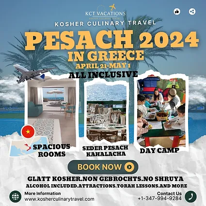 2. Setting up a victorious Pesach 2024 – second consecutive year at the Aldemar Olympian Village in Pyrgos Greece. We are setting aside a minimum of 20 rooms for soldiers and their families so they can have a truly restful Pesach after returning victorious from battle.